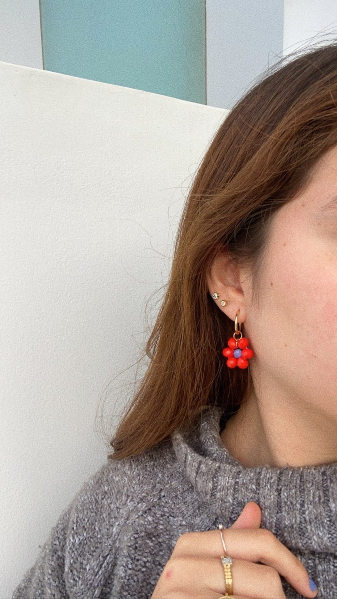 Flower Plus Earrings Red